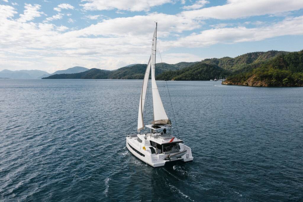 Catamaran Bali 4.8 OW Resif, built in 2022 is anchored in the Göcek/D-Marin, Aegean, Turkey. It has 3 + 1 cabins, can accommodate 8 people and has 3 + 1 toilets. Bed linen and kitchen equipment are included in the price.