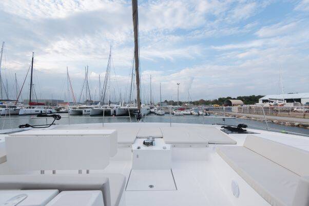 Catamaran Bali 5.4 DREAM AMALFI_DB, built in 2024 is anchored in the Naples, Pozzuoli, Campania, Italy. It has 6 + 2 cabins, can accommodate 12 + 2 people and has 6 + 2 toilets. Bed linen and kitchen equipment are included in the price.