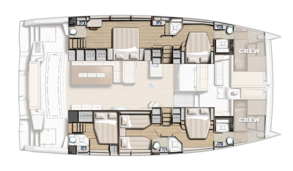Catamaran Bali 5.4 Marea I, built in 2020 is anchored in the Marina Kastela, Split region, Croatia. It has 5 + 2 cabins, can accommodate 10 + 2 people and has 5 + 2 toilets. Bed linen and kitchen equipment are included in the price.