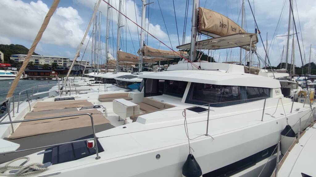 Catamaran Bali 5.4 SAPHIR, built in 2019 is anchored in the Martinique, Le Marin, Martinique, Caribbean. It has 6 + 2 cabins, can accommodate 12 + 2 people and has 6 + 2 toilets. Bed linen and kitchen equipment are included in the price.
