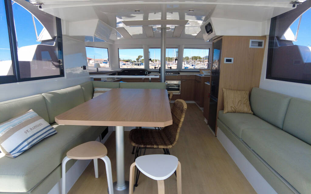 Catamaran Bali Catspace Black Swan, built in 2024 is anchored in the Hyeres Port Saint Pierre, Provence-Alpes-Côte d'Azur, France. It has 4 + 2 cabins, can accommodate 8 + 2 + 2 people and has 4 toilets. Bed linen and kitchen equipment are included in the price.