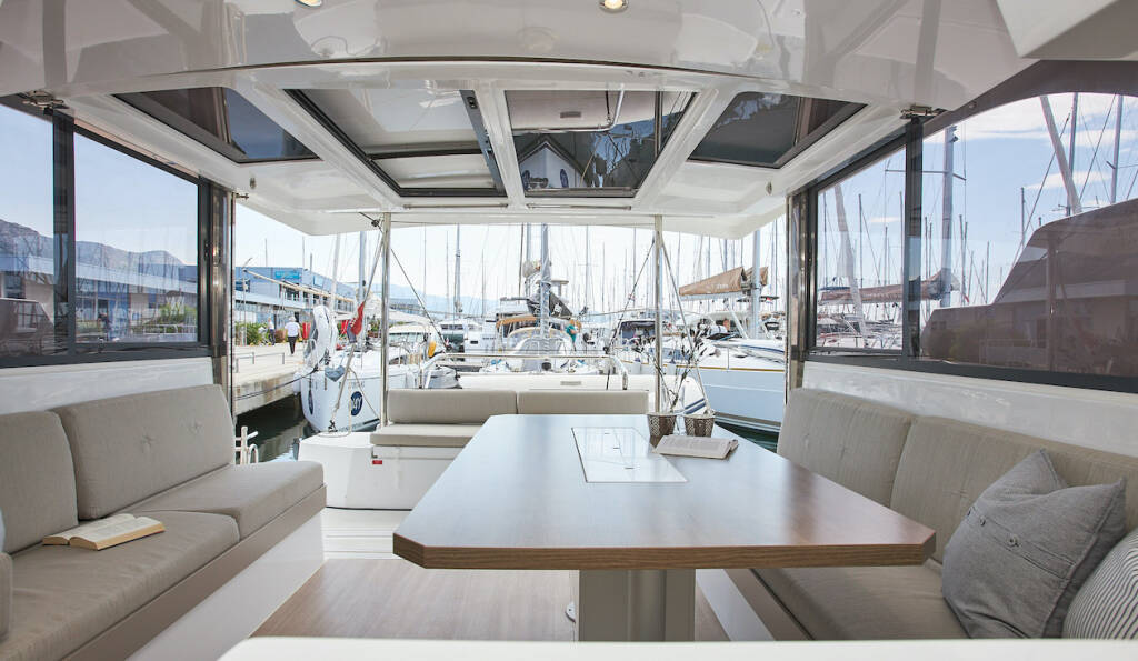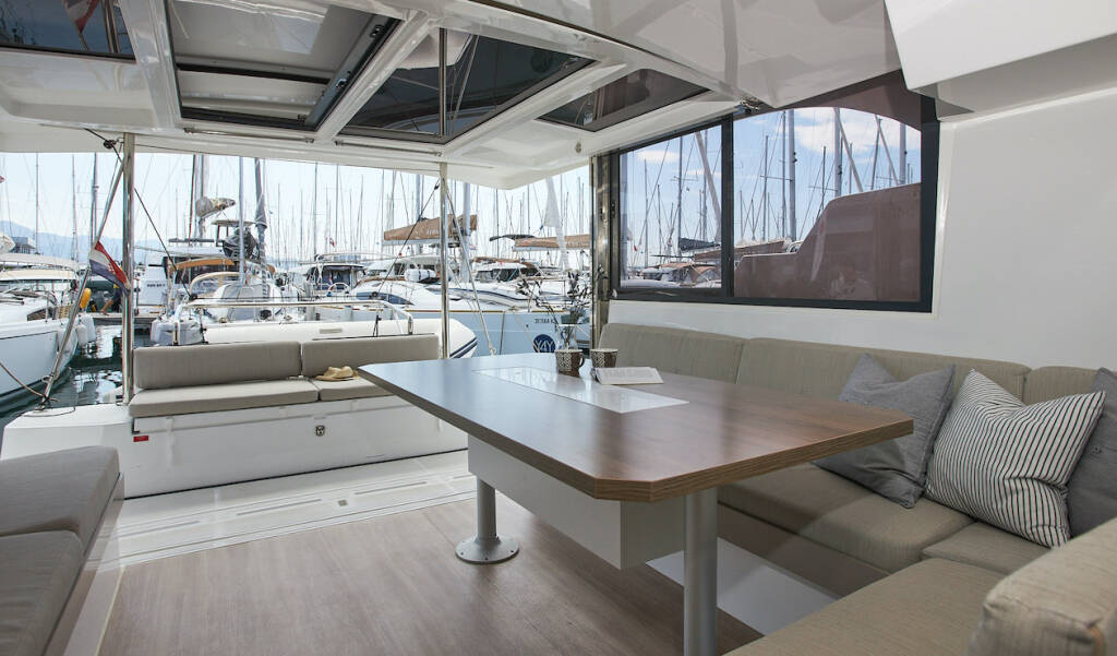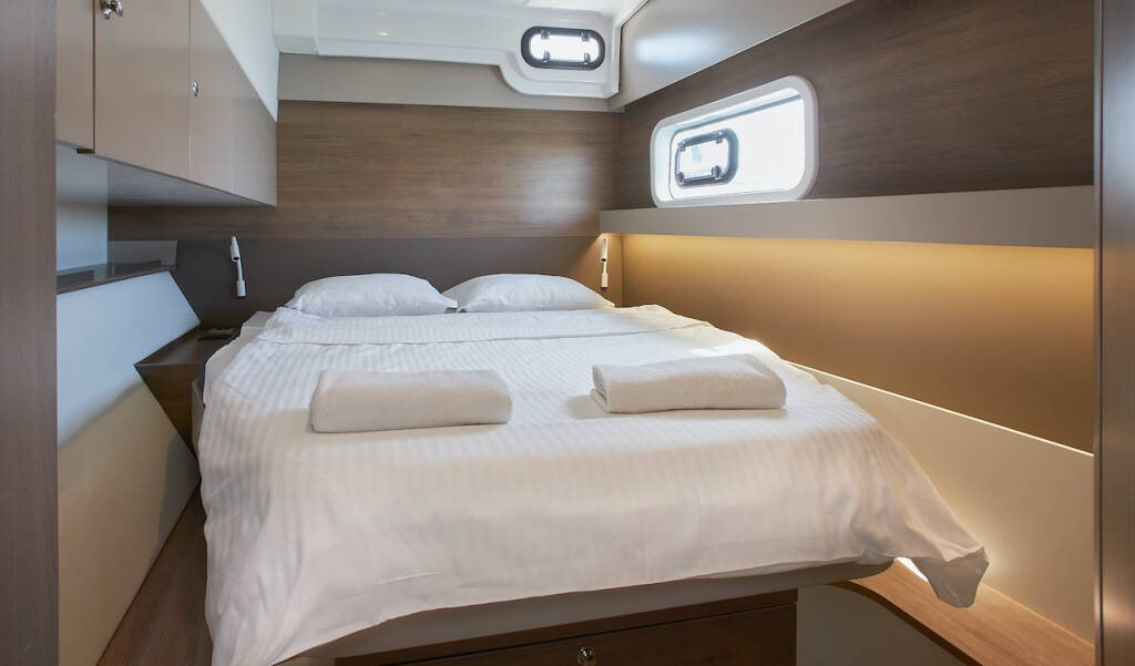 Catamaran Bali Catspace Meme, built in 2022 is anchored in the Marina Kastela, Split region, Croatia. It has 4 cabins, can accommodate 8 + 1 people and has 4 toilets. Bed linen and kitchen equipment are included in the price.