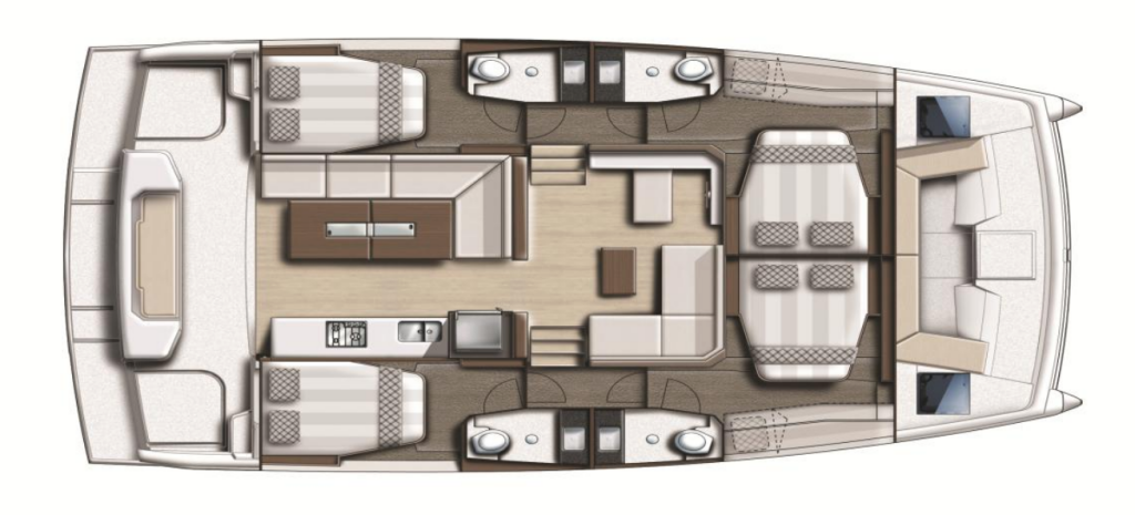 Power catamaran Bali Catspace MY Leila, built in 2022 is anchored in the Marina Kremik, Primosten, Šibenik region, Croatia. It has 4 cabins, can accommodate 8 people and has 4 toilets. Bed linen and kitchen equipment are included in the price.