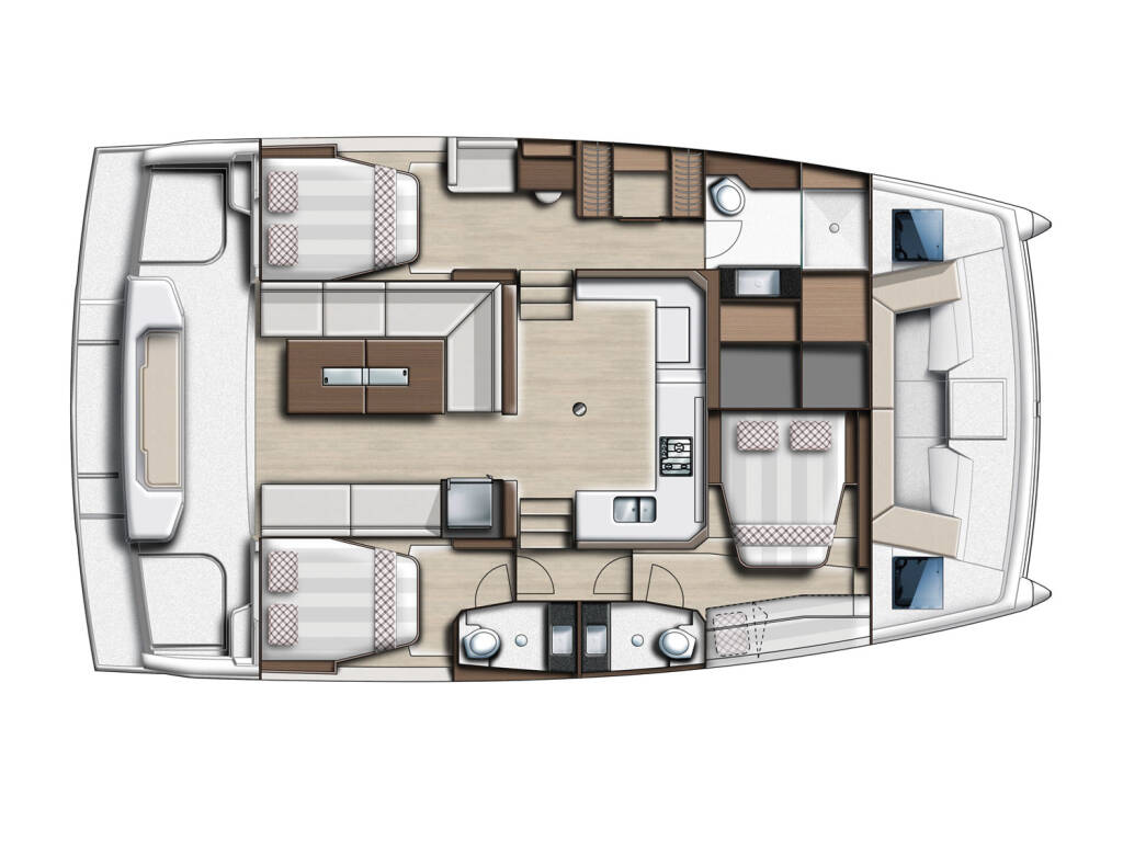 Catamaran Bali Catspace OW Playtime - OW, built in 2025 is anchored in the Sukosan, D-Marin Dalmacija Marina, Zadar region, Croatia. It has 3 cabins, can accommodate 6 + 2 people and has 3 toilets. Bed linen and kitchen equipment are included in the price.