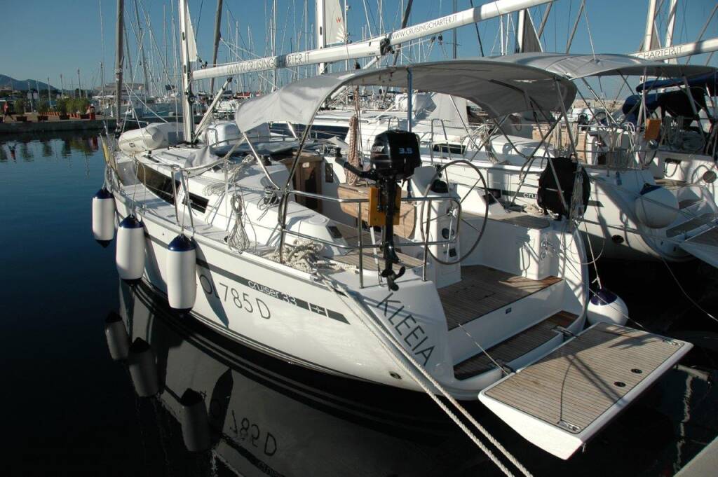 Sailing yacht Bavaria 33 Kleeia, built in 2015 is anchored in the Marina di Portisco, Sardinia, Italy. It has 2 cabins, can accommodate 4 + 2 people and has 1 toilets. Bed linen and kitchen equipment are included in the price.