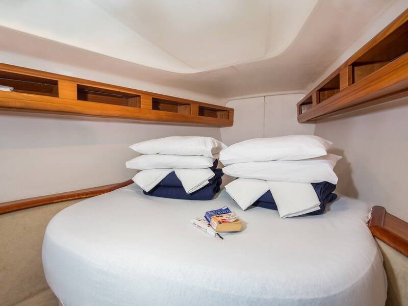 Sailing yacht Bavaria 42 Match Fastnet, built in 2005 is anchored in the Marina Kornati, Biograd, Zadar region, Croatia. It has 3 cabins, can accommodate 6 + 2 people and has 1 toilets. Bed linen and kitchen equipment are included in the price.