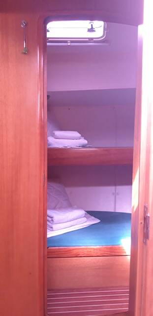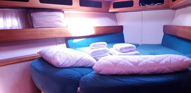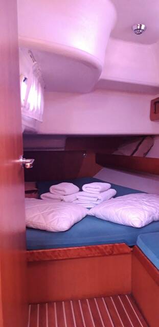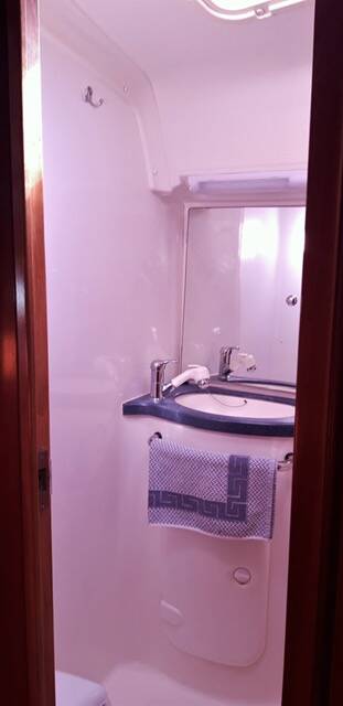 Sailing yacht Bavaria 46 Cruiser Daluz, built in 2005 is anchored in the Lefkas main port, Ionian Islands, Greece. It has 4 cabins, can accommodate 8 people and has 2 toilets. Bed linen and kitchen equipment are included in the price.