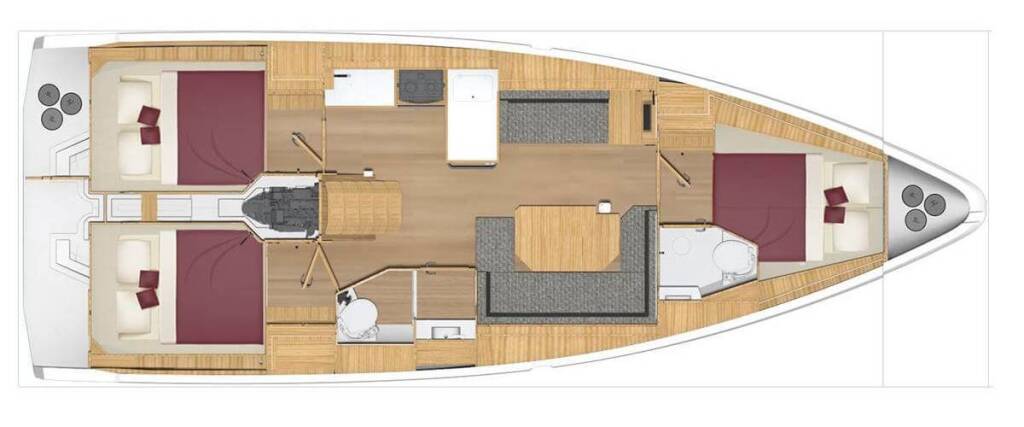 Sailing yacht Bavaria C38 Velika Luka, built in 2025 is anchored in the ACI Marina Split, Split region, Croatia. It has 3 cabins, can accommodate 6 + 2 people and has 2 toilets. Bed linen and kitchen equipment are included in the price.