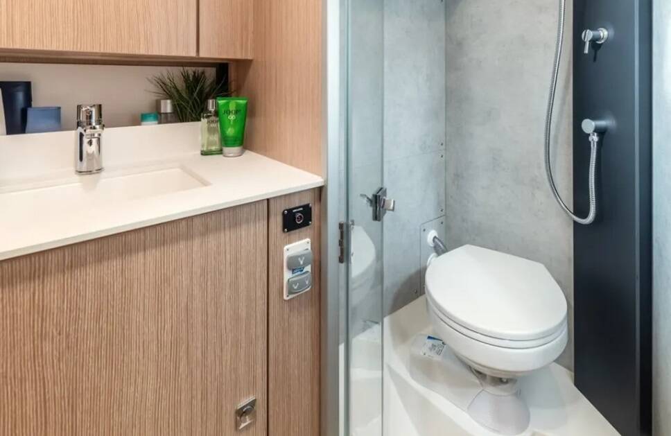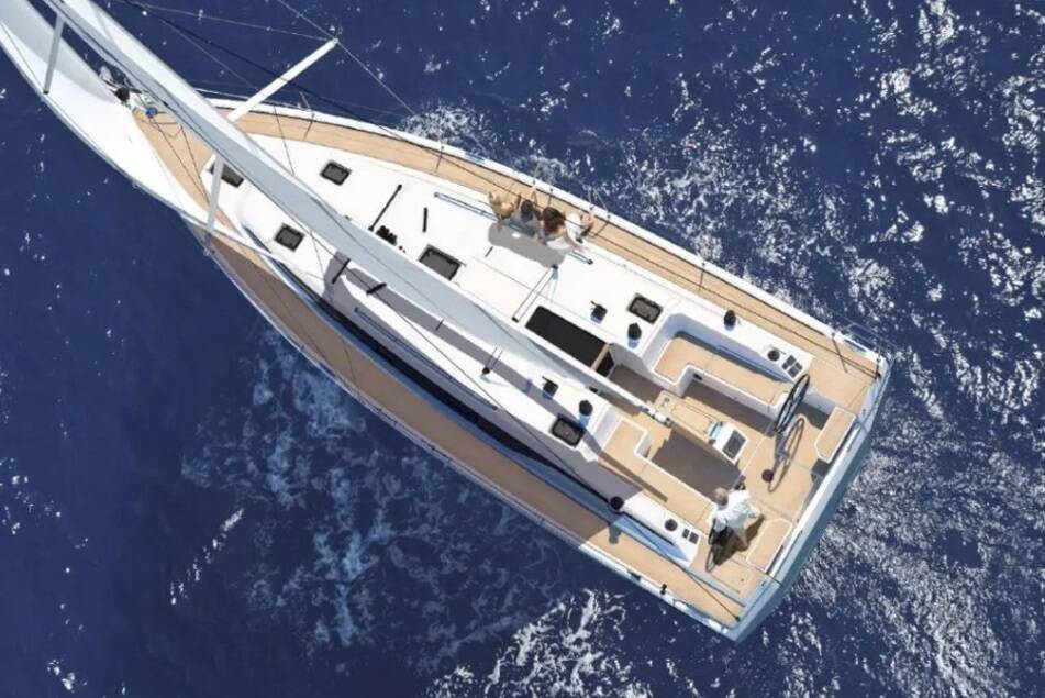 Sailing yacht Bavaria C42 Arian, built in 2022 is anchored in the Lefkas main port, Ionian Islands, Greece. It has 3 cabins, can accommodate 6 + 2 people and has 2 toilets. Bed linen and kitchen equipment are included in the price.