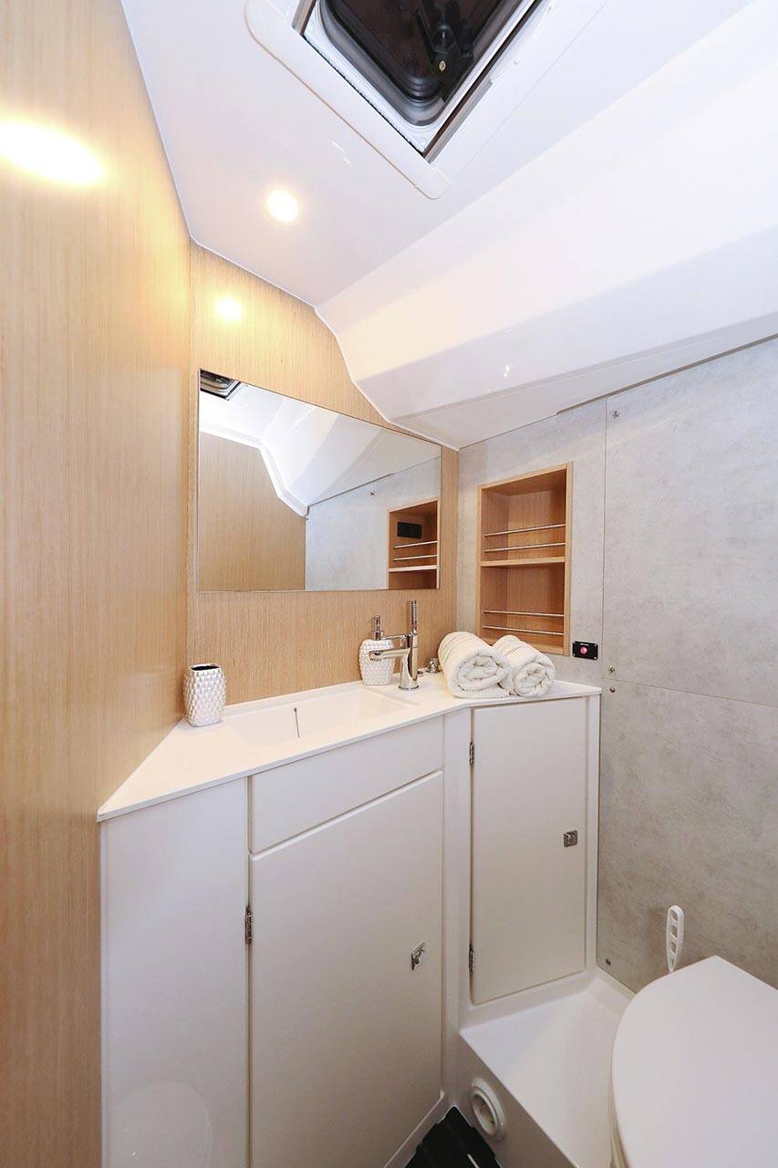 Sailing yacht Bavaria C42 First Light, built in 2020 is anchored in the Marina Kornati, Biograd, Zadar region, Croatia. It has 3 cabins, can accommodate 6 + 1 people and has 2 toilets. Bed linen and kitchen equipment are included in the price.