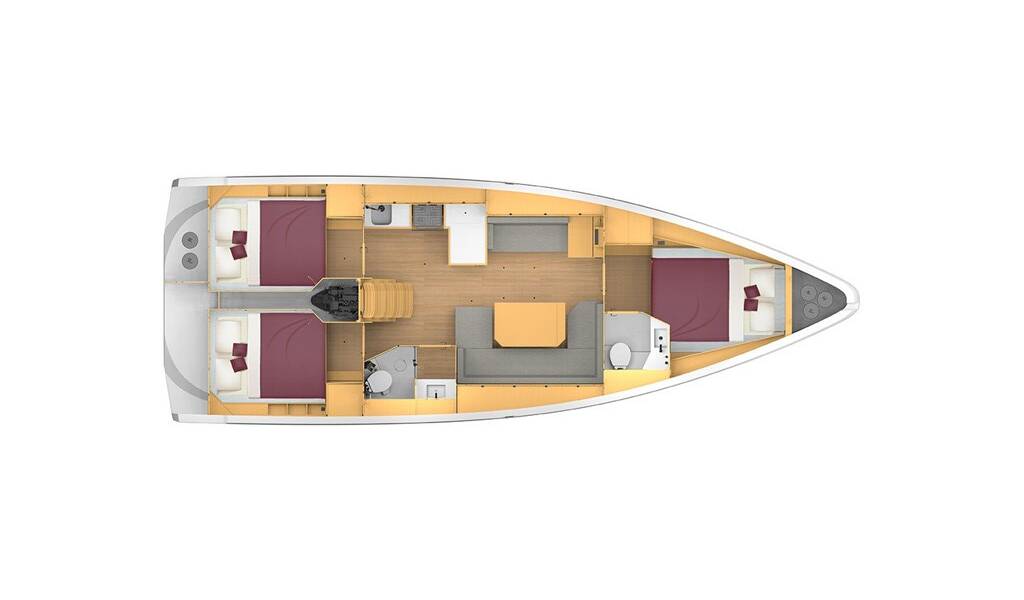 Sailing yacht Bavaria C42 Nomad, built in 2021 is anchored in the Fethiye, Yes Marina, Aegean, Turkey. It has 3 cabins, can accommodate 6 people and has 2 toilets. Bed linen and kitchen equipment are included in the price.