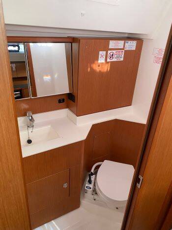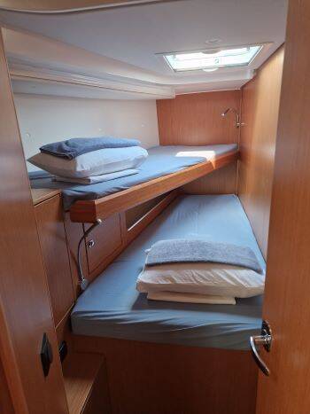 Sailing yacht Bavaria C45 Bluna, built in 2023 is anchored in the ACI Marina Trogir, Split region, Croatia. It has 4 cabins, can accommodate 8 + 2 people and has 3 toilets. Bed linen and kitchen equipment are included in the price.