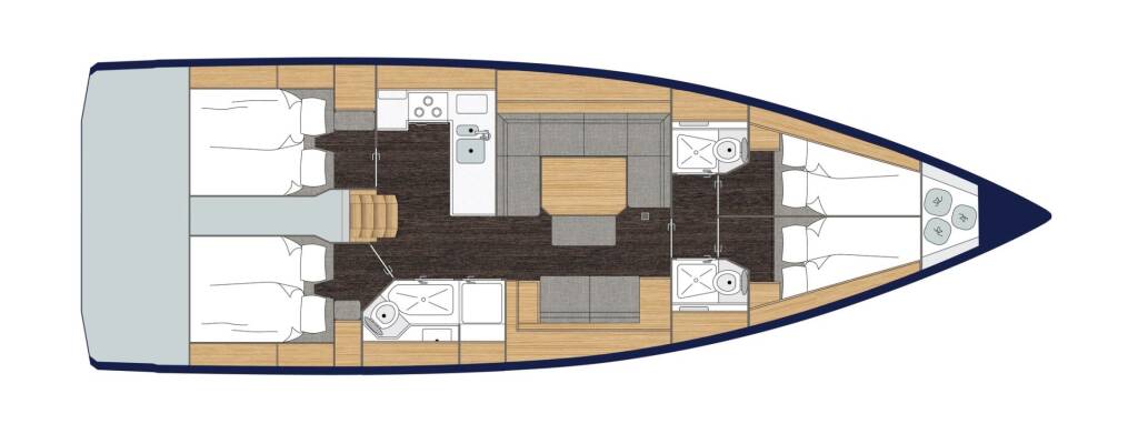 Sailing yacht Bavaria C45 Dawn, built in 2019 is anchored in the Lefkas, D-Marin, Ionian Islands, Greece. It has 4 cabins, can accommodate 8 people and has 3 toilets. Bed linen and kitchen equipment are included in the price.