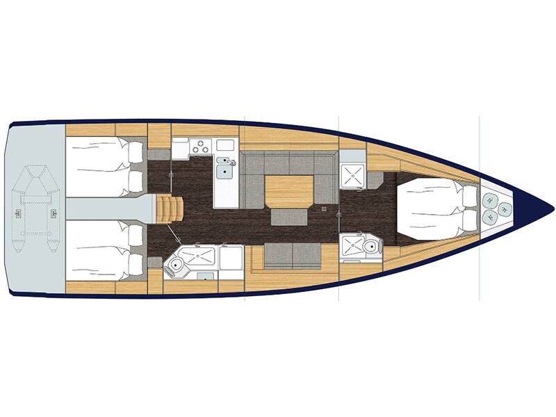 Sailing yacht Bavaria C45 Style Wahlheimat, built in 2023 is anchored in the Marina Kremik, Primosten, Šibenik region, Croatia. It has 3 cabins, can accommodate 6 people and has 2 toilets. Bed linen and kitchen equipment are included in the price.