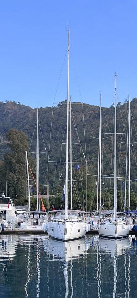Sailing yacht Bavaria C50 B-Line, built in 2023 is anchored in the Setur Göcek Village Port, Aegean, Turkey. It has 5 + 1 cabins, can accommodate 10 + 1 people and has 4 toilets. Bed linen and kitchen equipment are included in the price.
