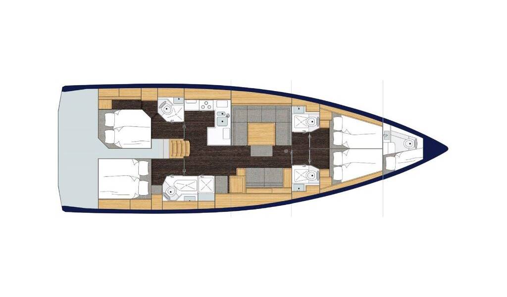 Sailing yacht Bavaria C50 Style Moya One, built in 2024 is anchored in the Corfu, Gouvia Marina, Ionian Islands, Greece. It has 4 + 1 cabins, can accommodate 8 + 1 + 1 people and has 4 + 1 toilets. Bed linen and kitchen equipment are included in the price.