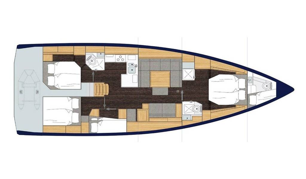Sailing yacht Bavaria C50 Style Naltoya, built in 2023 is anchored in the Marina Kornati, Biograd, Zadar region, Croatia. It has 4 + 1 cabins, can accommodate 8 + 2 + 1 people and has 2 + 1 toilets. Bed linen and kitchen equipment are included in the price.