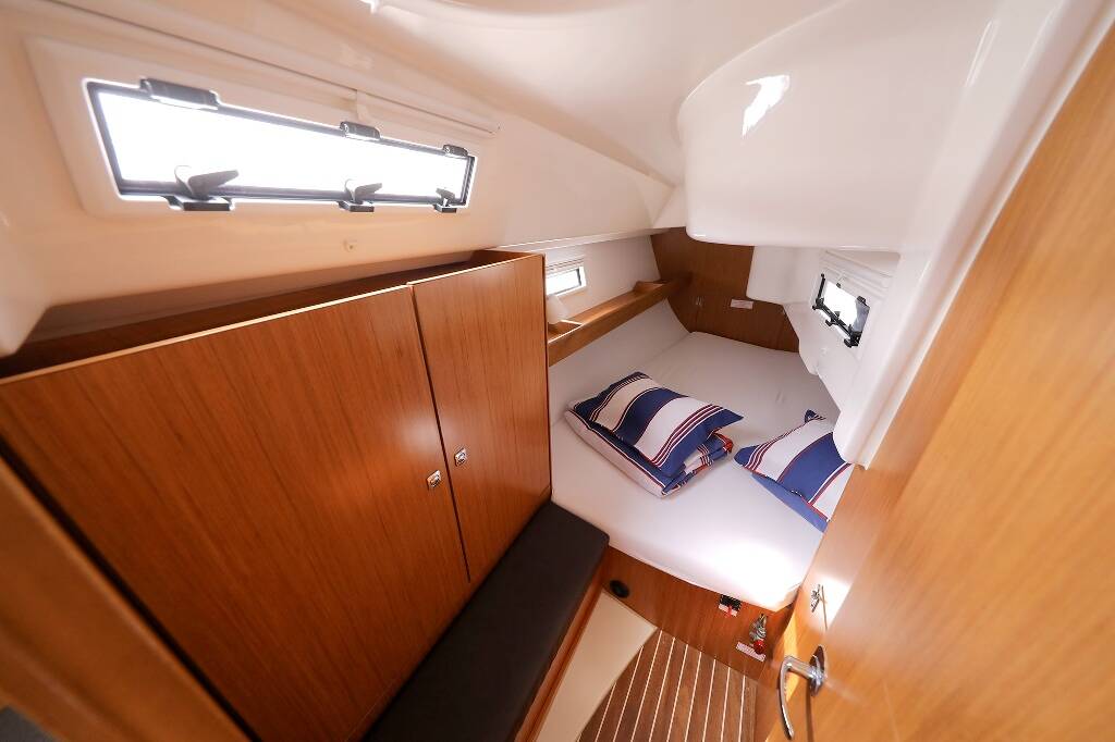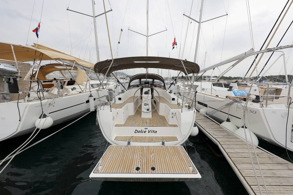 Sailing yacht Bavaria Cruiser 33 Dolce Vita, built in 2016 is anchored in the ACI Marina Vodice, Šibenik region, Croatia. It has 2 cabins, can accommodate 4 + 1 people and has 1 toilets. Bed linen and kitchen equipment are included in the price.