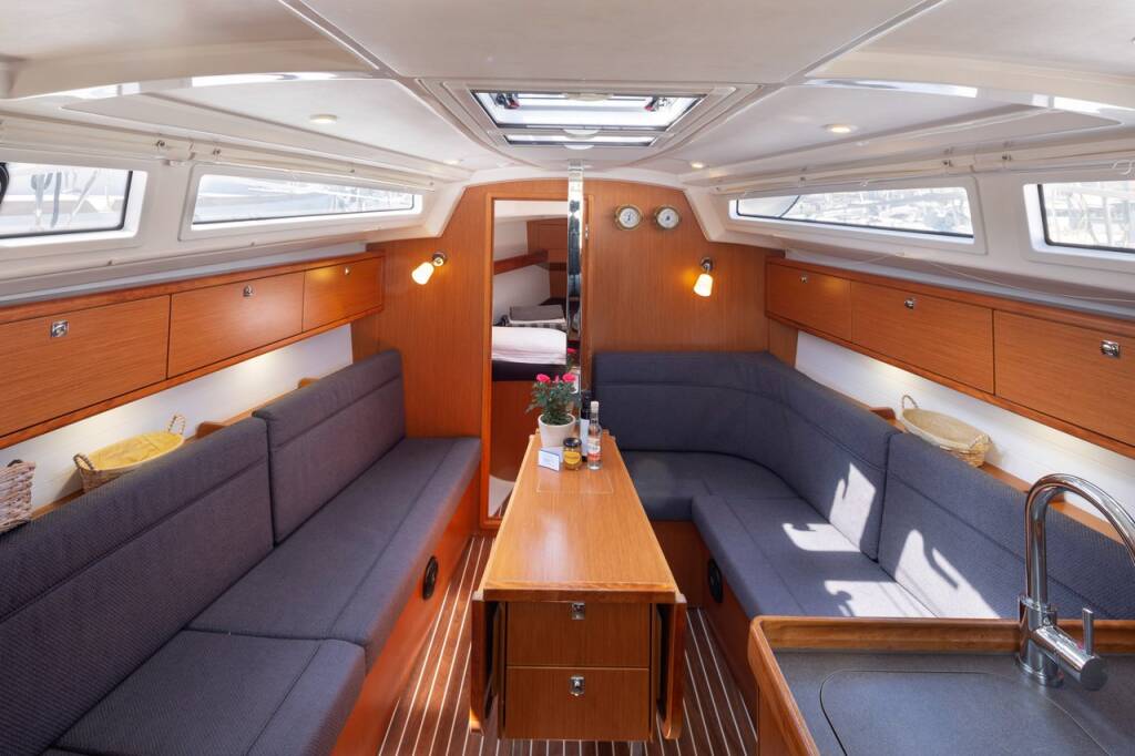 Sailing yacht Bavaria Cruiser 34 Oneiro, built in 2017 is anchored in the Lefkas main port, Ionian Islands, Greece. It has 2 cabins, can accommodate 4 + 1 people and has 1 toilets. Bed linen and kitchen equipment are included in the price.