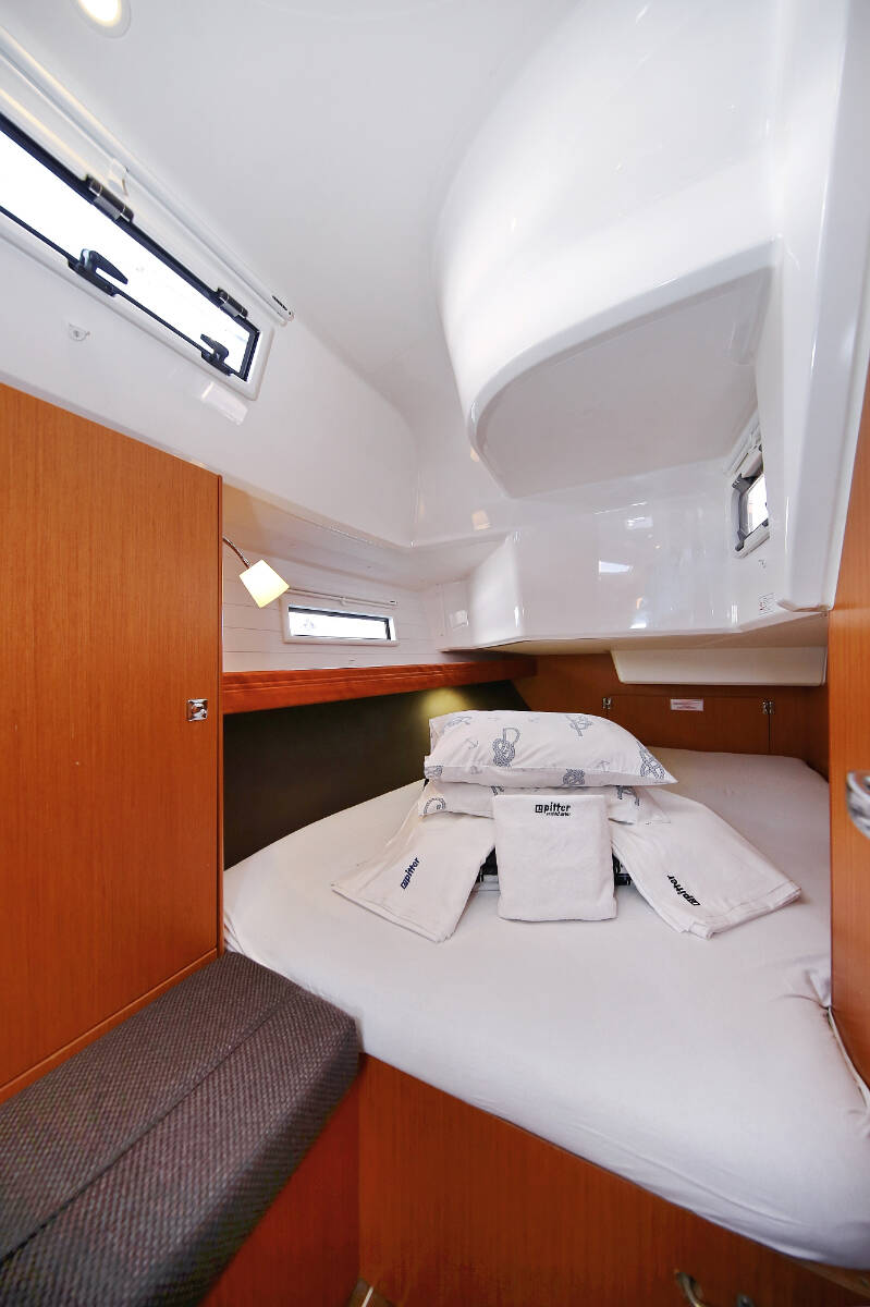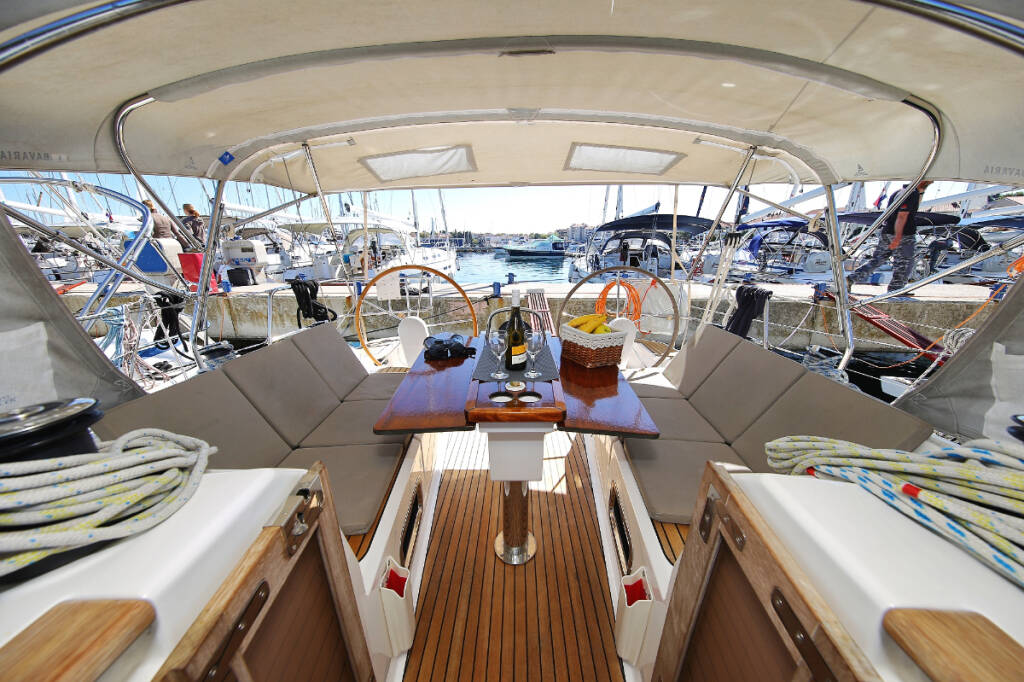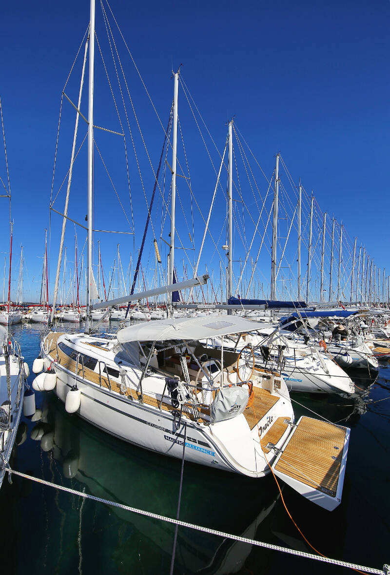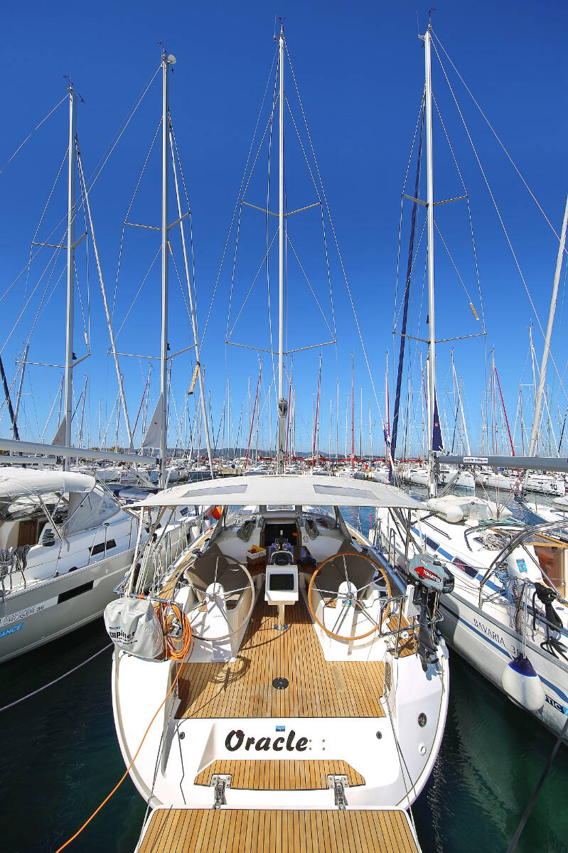 Sailing yacht Bavaria Cruiser 37 Oracle, built in 2014 is anchored in the Marina Hramina, Murter, Šibenik region, Croatia. It has 3 cabins, can accommodate 6 + 1 people and has 1 toilets. Bed linen and kitchen equipment are included in the price.