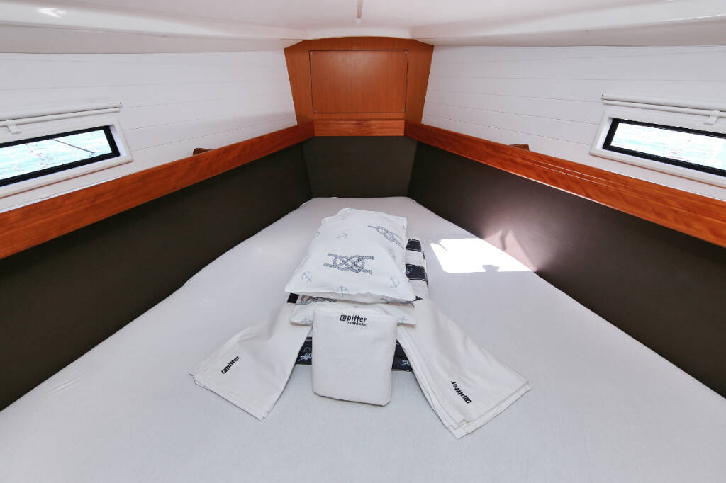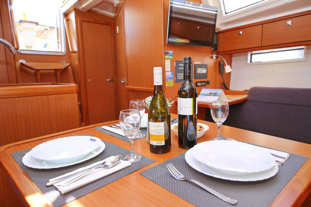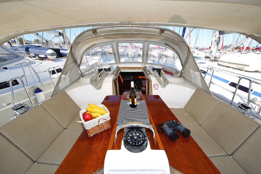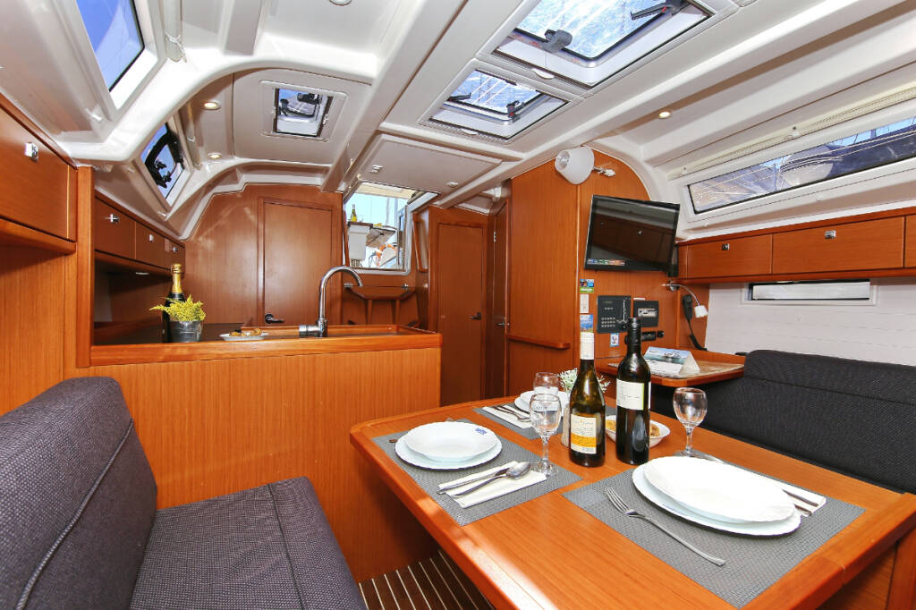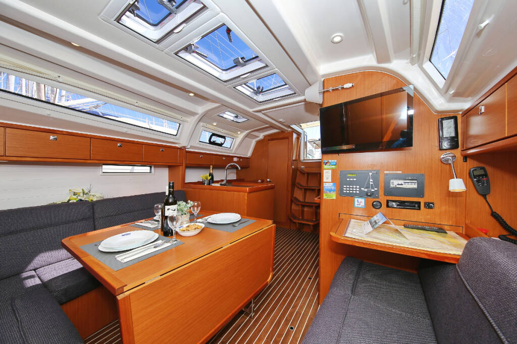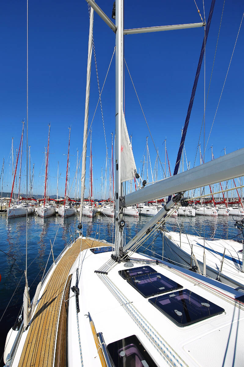 Sailing yacht Bavaria Cruiser 37 Oracle, built in 2014 is anchored in the Marina Hramina, Murter, Šibenik region, Croatia. It has 3 cabins, can accommodate 6 + 1 people and has 1 toilets. Bed linen and kitchen equipment are included in the price.
