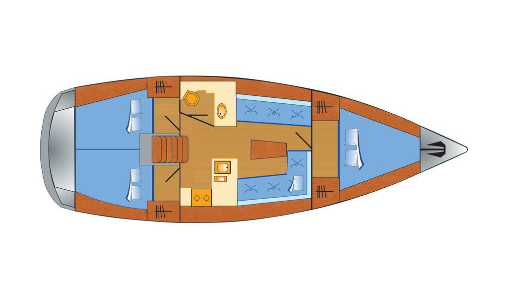 Sailing yacht Bavaria Cruiser 37 Tiger, built in 2016 is anchored in the Marina Flensburg Sonwik, Schleswig-Holstein, Germany. It has 3 cabins, can accommodate 6 people and has 1 toilets. Bed linen and kitchen equipment are included in the price.
