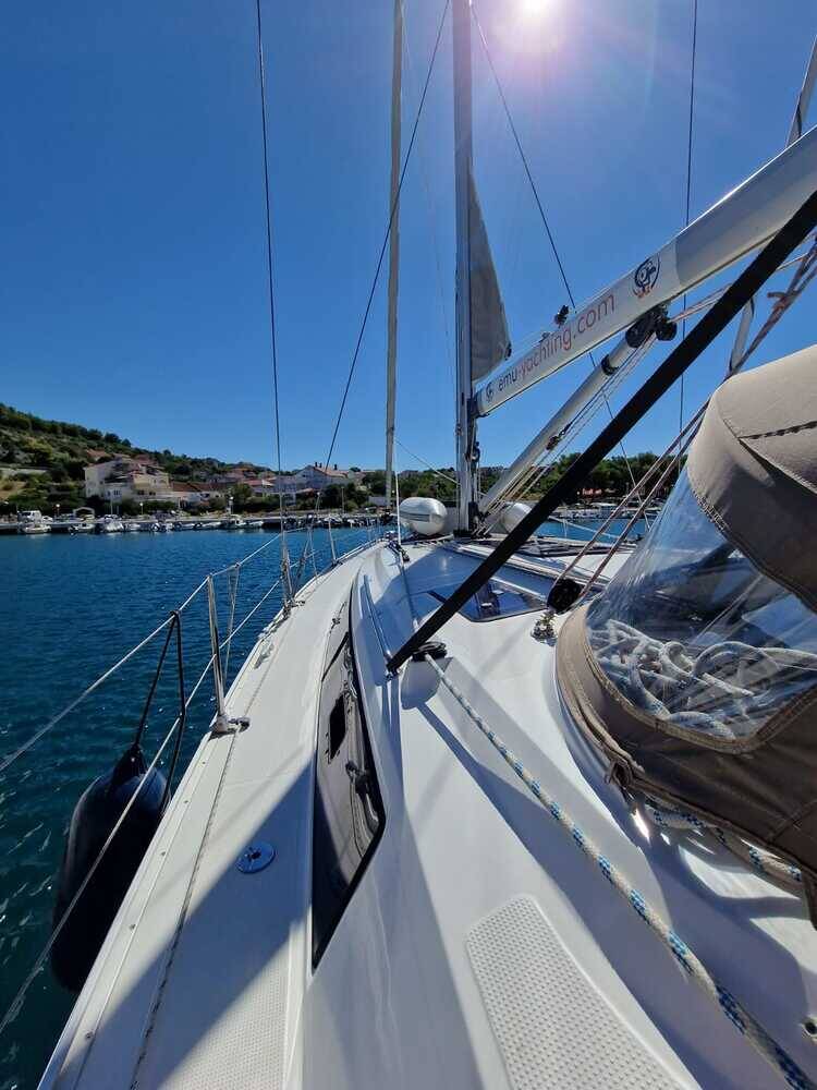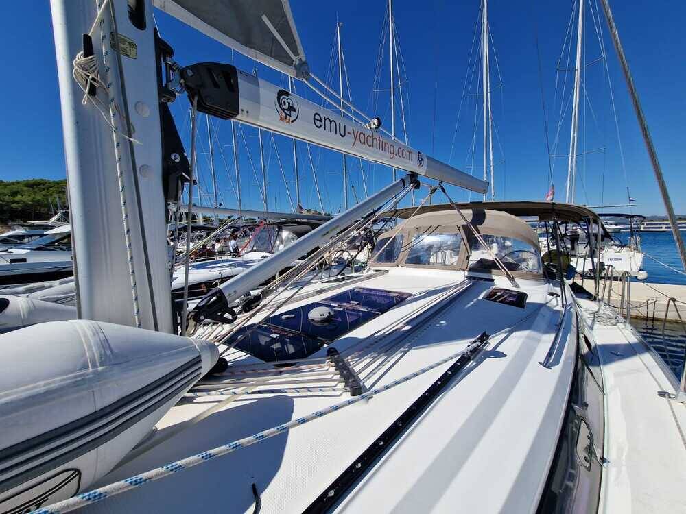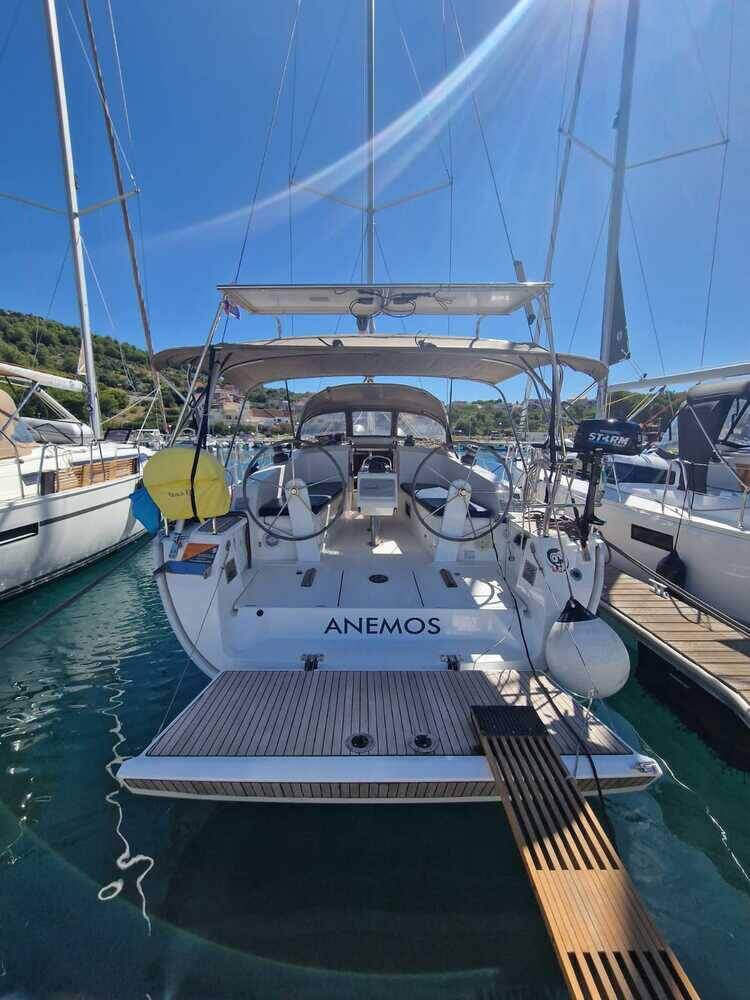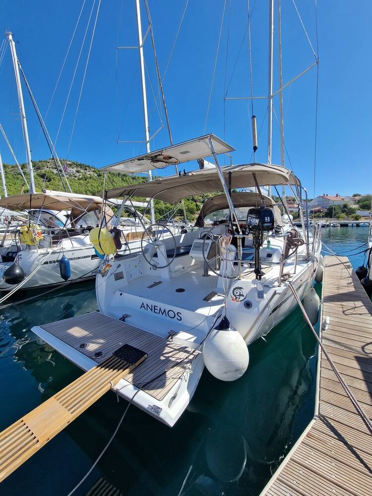 Sailing yacht Bavaria Cruiser 41 Anemos, built in 2015 is anchored in the Marina Drage, Zadar region, Croatia. It has 3 cabins, can accommodate 6 + 1 people and has 2 toilets. Bed linen and kitchen equipment are included in the price.