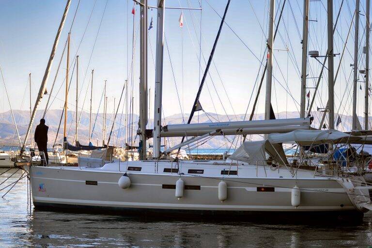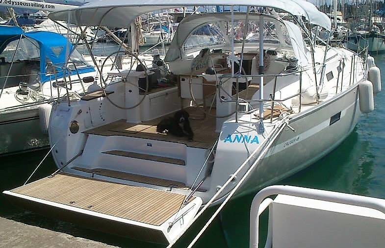 Sailing yacht Bavaria Cruiser 45 Anna, built in 2013 is anchored in the Corfu, Gouvia Marina, Ionian Islands, Greece. It has 4 cabins, can accommodate 8 people and has 3 toilets. Bed linen and kitchen equipment are included in the price.