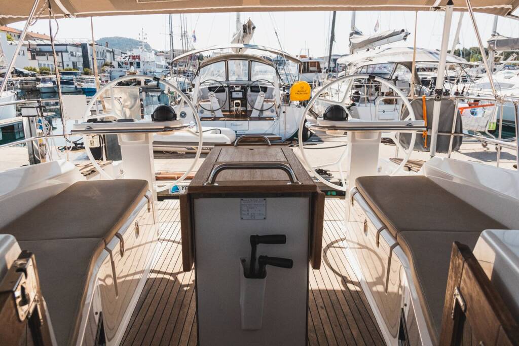 Sailing yacht Bavaria Cruiser 45 Bonata, built in 2013 is anchored in the Marina Mandalina, Sibenik, Šibenik region, Croatia. It has 4 cabins, can accommodate 8 + 2 people and has 3 toilets. Bed linen and kitchen equipment are included in the price.
