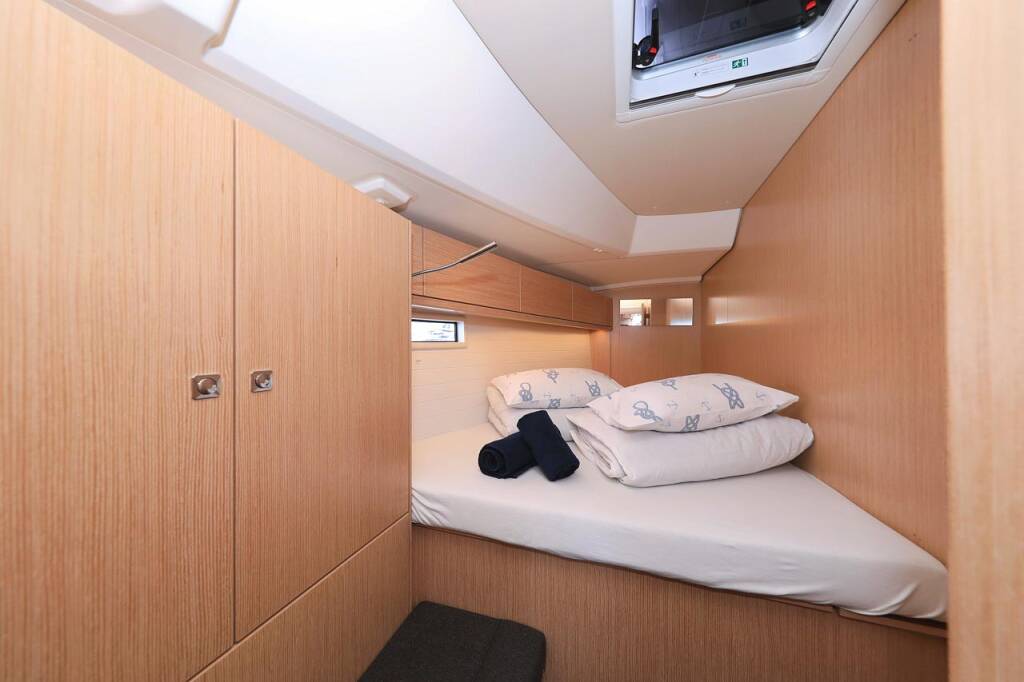 Sailing yacht Bavaria Cruiser 46 Aiolos I, built in 2021 is anchored in the Marina Kornati, Biograd, Zadar region, Croatia. It has 4 cabins, can accommodate 8 + 1 people and has 3 toilets. Bed linen and kitchen equipment are included in the price.