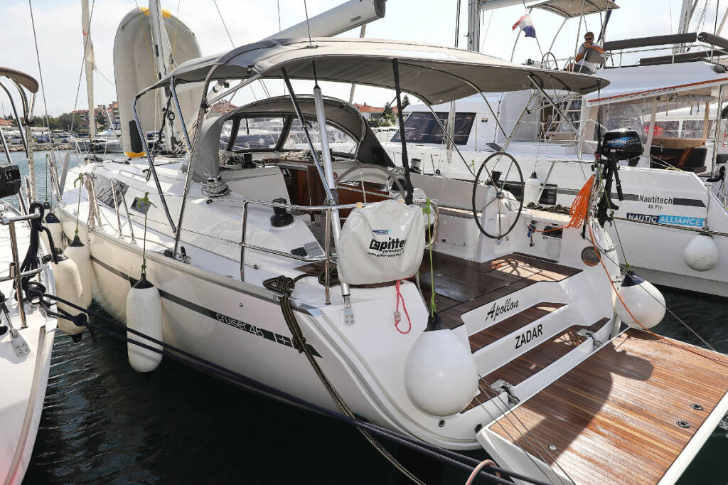 Sailing yacht Bavaria Cruiser 46 Apollon, built in 2017 is anchored in the Murter, ACI Marina Jezera, Šibenik region, Croatia. It has 4 cabins, can accommodate 8 + 1 people and has 3 toilets. Bed linen and kitchen equipment are included in the price.