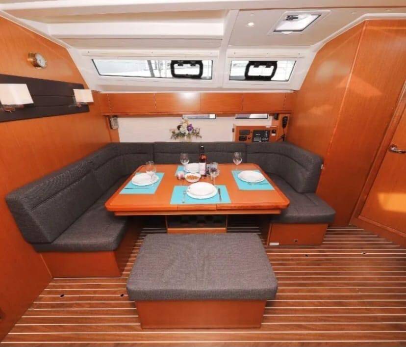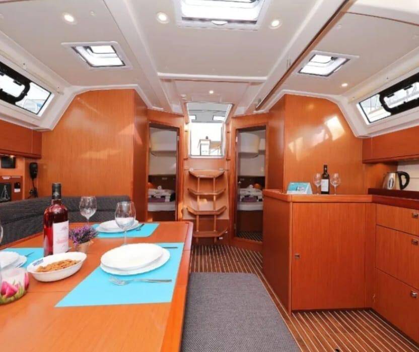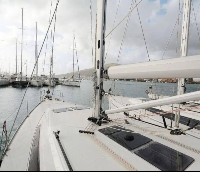 Sailing yacht Bavaria Cruiser 46 Athene, built in 2018 is anchored in the Marina Frapa, Rogoznica, Šibenik region, Croatia. It has 4 cabins, can accommodate 8 + 1 people and has 3 toilets. Bed linen and kitchen equipment are included in the price.