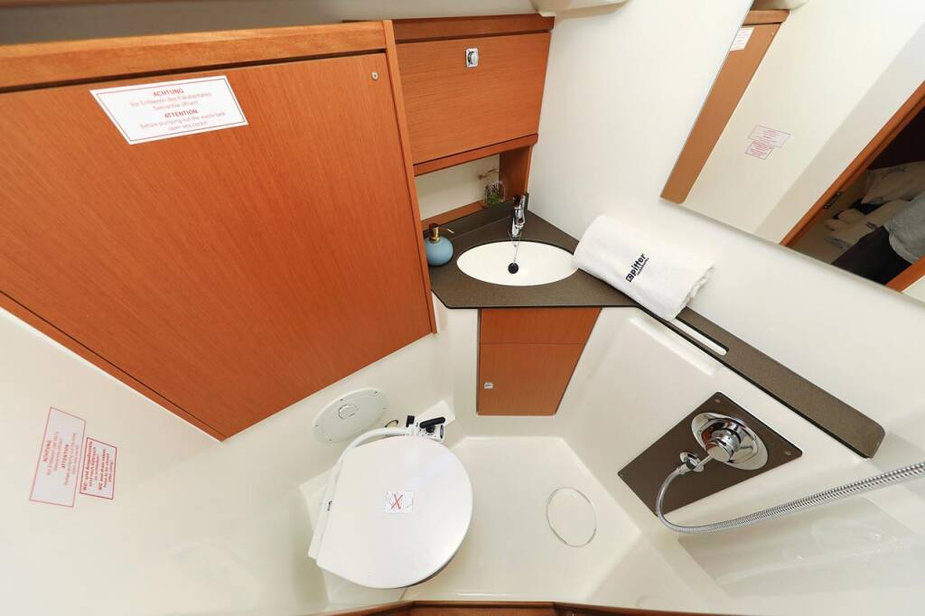 Sailing yacht Bavaria Cruiser 46 Avior, built in 2021 is anchored in the Marina Kornati, Biograd, Zadar region, Croatia. It has 4 cabins, can accommodate 8 + 1 people and has 3 toilets. Bed linen and kitchen equipment are included in the price.