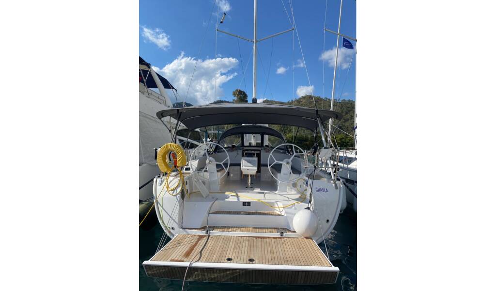 Sailing yacht Bavaria Cruiser 46 Chagla, built in 2023 is anchored in the Setur Göcek Village Port, Aegean, Turkey. It has 4 cabins, can accommodate 8 people and has 3 toilets. Bed linen and kitchen equipment are included in the price.