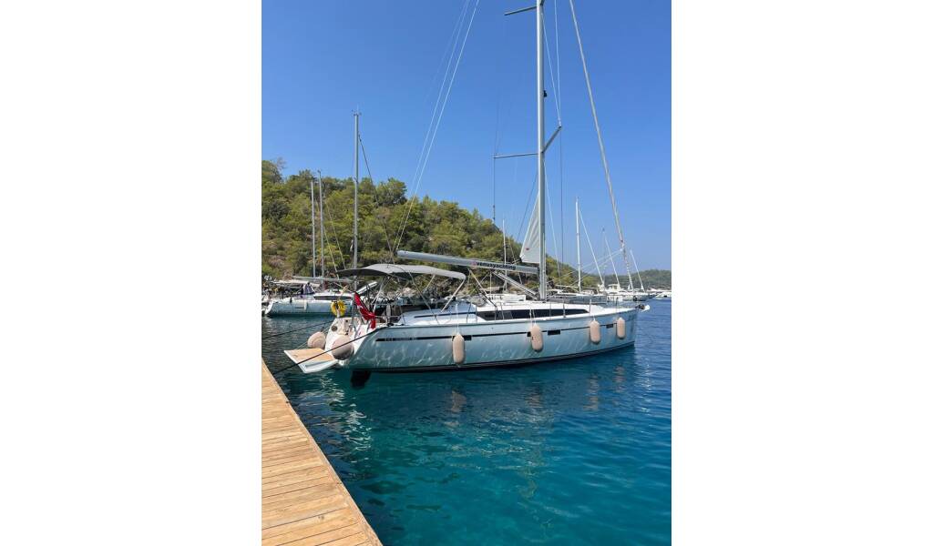 Sailing yacht Bavaria Cruiser 46 Life Is Beautiful, built in 2023 is anchored in the Setur Göcek Village Port, Aegean, Turkey. It has 3 cabins, can accommodate 6 + 2 people and has 3 toilets. Bed linen and kitchen equipment are included in the price.