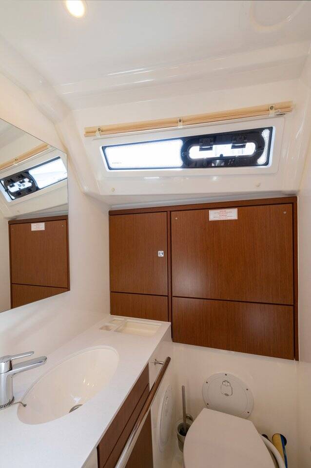Sailing yacht Bavaria Cruiser 46 Style Aiolos, built in 2021 is anchored in the Lefkas main port, Ionian Islands, Greece. It has 4 cabins, can accommodate 8 + 1 people and has 3 toilets. Bed linen and kitchen equipment are included in the price.