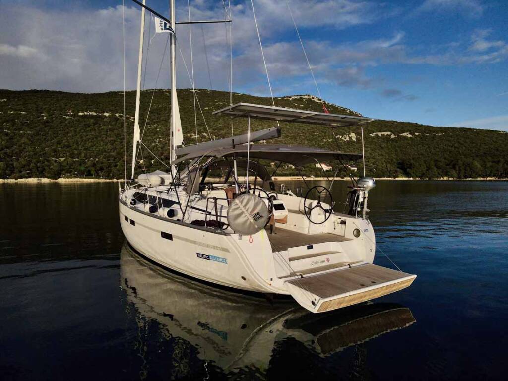 Sailing yacht Bavaria Cruiser 46 Style Cataleya, built in 2024 is anchored in the Marina Kornati, Biograd, Zadar region, Croatia. It has 4 cabins, can accommodate 8 + 1 people and has 3 toilets. Bed linen and kitchen equipment are included in the price.