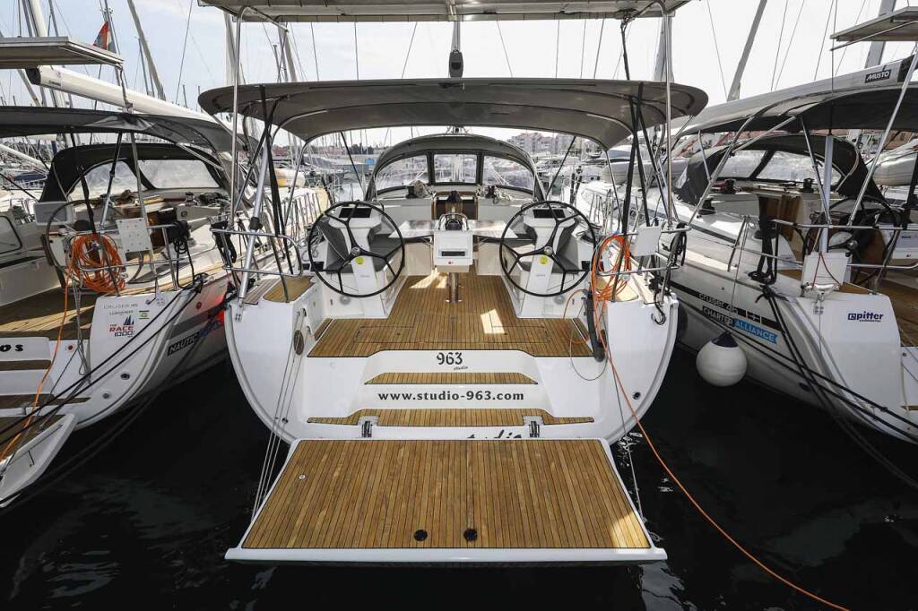 Sailing yacht Bavaria Cruiser 46 Style Studio 963, built in 2023 is anchored in the Marina Kornati, Biograd, Zadar region, Croatia. It has 4 cabins, can accommodate 8 + 1 people and has 3 toilets. Bed linen and kitchen equipment are included in the price.