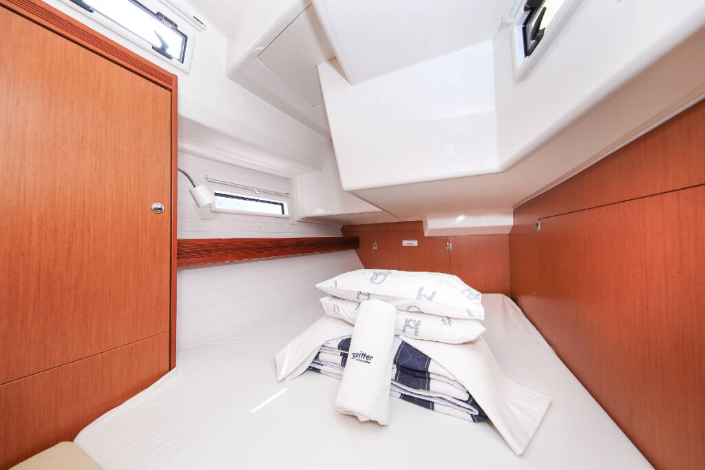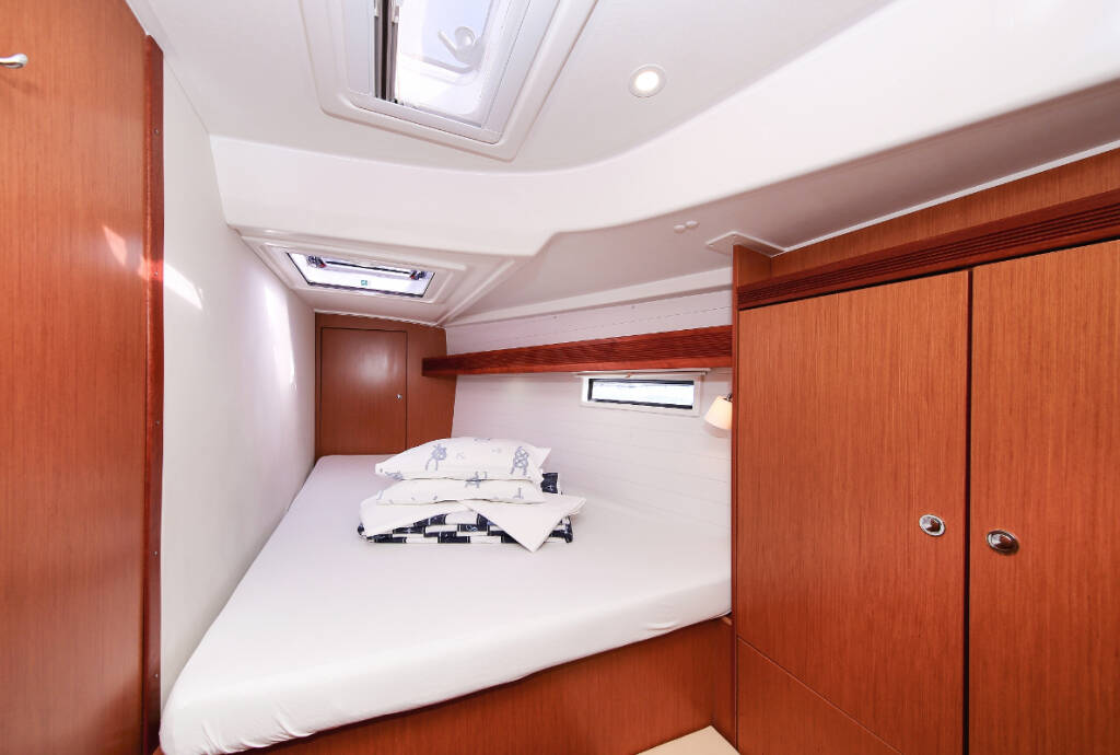 Sailing yacht Bavaria Cruiser 50 Avantgarde Godspeed, built in 2013 is anchored in the Marina Hramina, Murter, Šibenik region, Croatia. It has 5 cabins, can accommodate 10 + 1 people and has 3 toilets. Bed linen and kitchen equipment are included in the price.