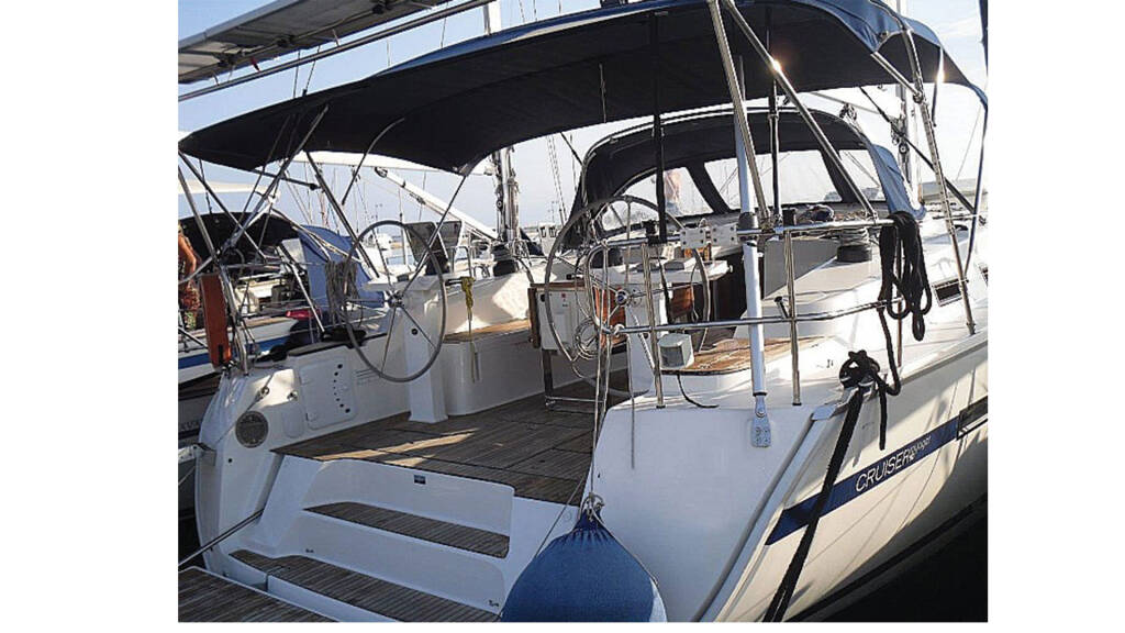 Sailing yacht Bavaria Cruiser 50 Juniper, built in 2014 is anchored in the Lefkas main port, Ionian Islands, Greece. It has 5 cabins, can accommodate 10 people and has 3 toilets. Bed linen and kitchen equipment are included in the price.