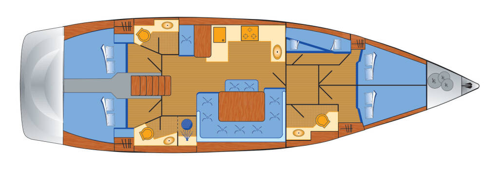 Sailing yacht Bavaria Cruiser 51 Jumbo, built in 2015 is anchored in the Heiligenhafen, Schleswig-Holstein, Germany. It has 5 cabins, can accommodate 10 people and has 3 toilets. Bed linen and kitchen equipment are included in the price.