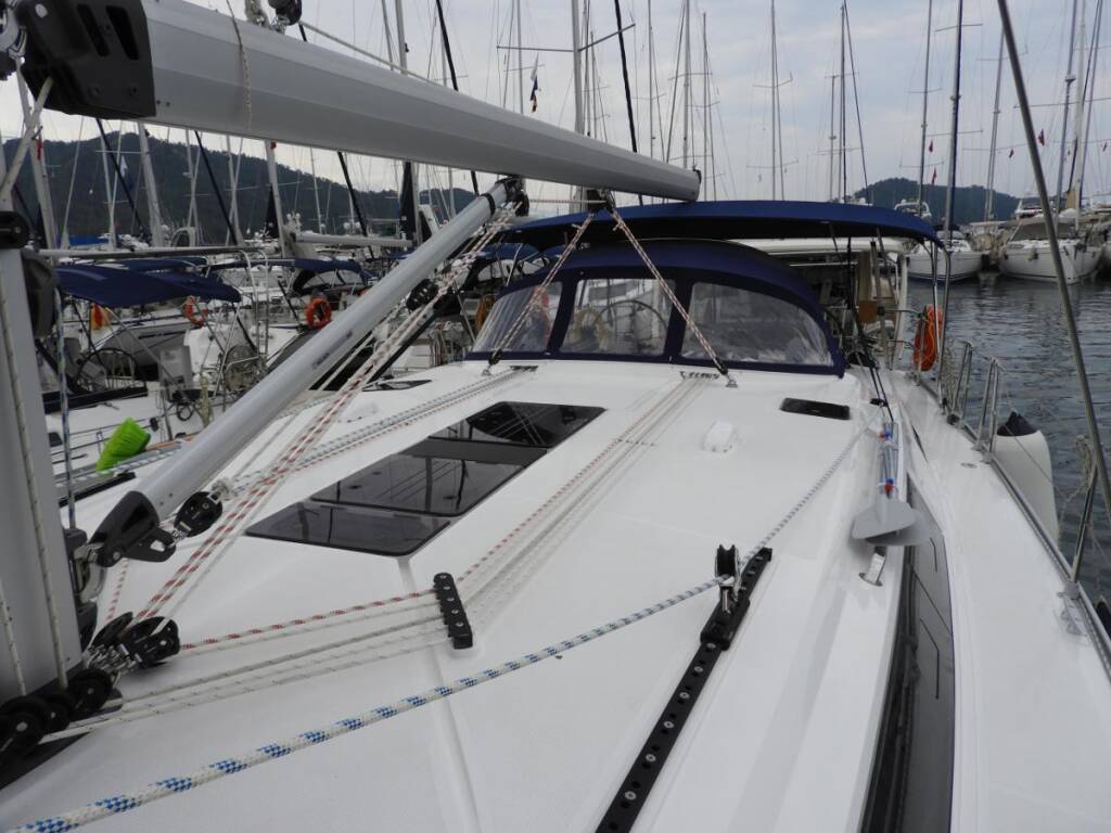 Sailing yacht Bavaria Cruiser 51 Mango, built in 2015 is anchored in the Göcek Mucev Marina, Aegean, Turkey. It has 5 cabins, can accommodate 10 people and has 3 toilets. Bed linen and kitchen equipment are included in the price.