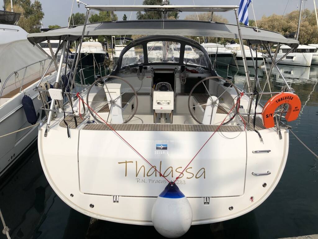 Sailing yacht Bavaria Cruiser 51 Thalassa, built in 2019 is anchored in the Athens, Alimos marina, Athens area/Saronic/Peloponese, Greece. It has 5 cabins, can accommodate 10 + 2 people and has 3 toilets. Bed linen and kitchen equipment are included in the price.