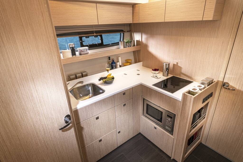 Motor yacht Bavaria SR41 Ivana, built in 2024 is anchored in the Trogir, Marina Trogir (ex.SCT), Split region, Croatia. It has 2 cabins, can accommodate 4 people and has 2 toilets. Bed linen and kitchen equipment are included in the price.