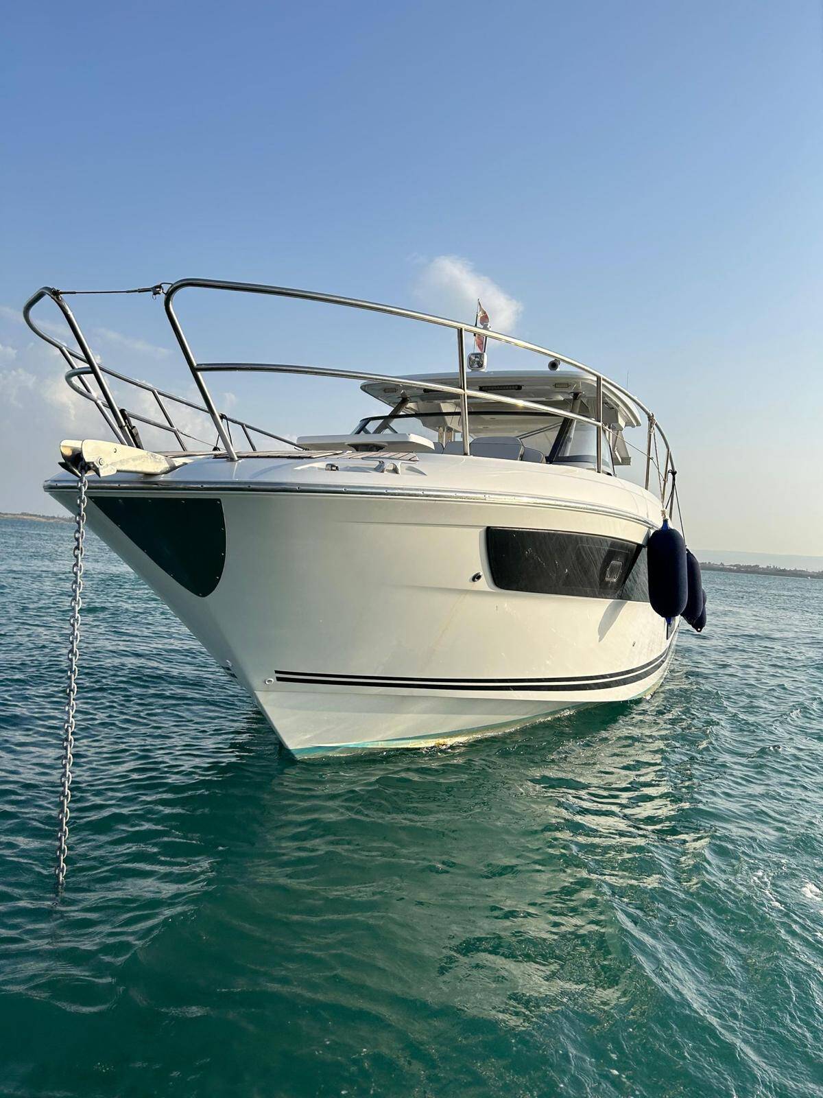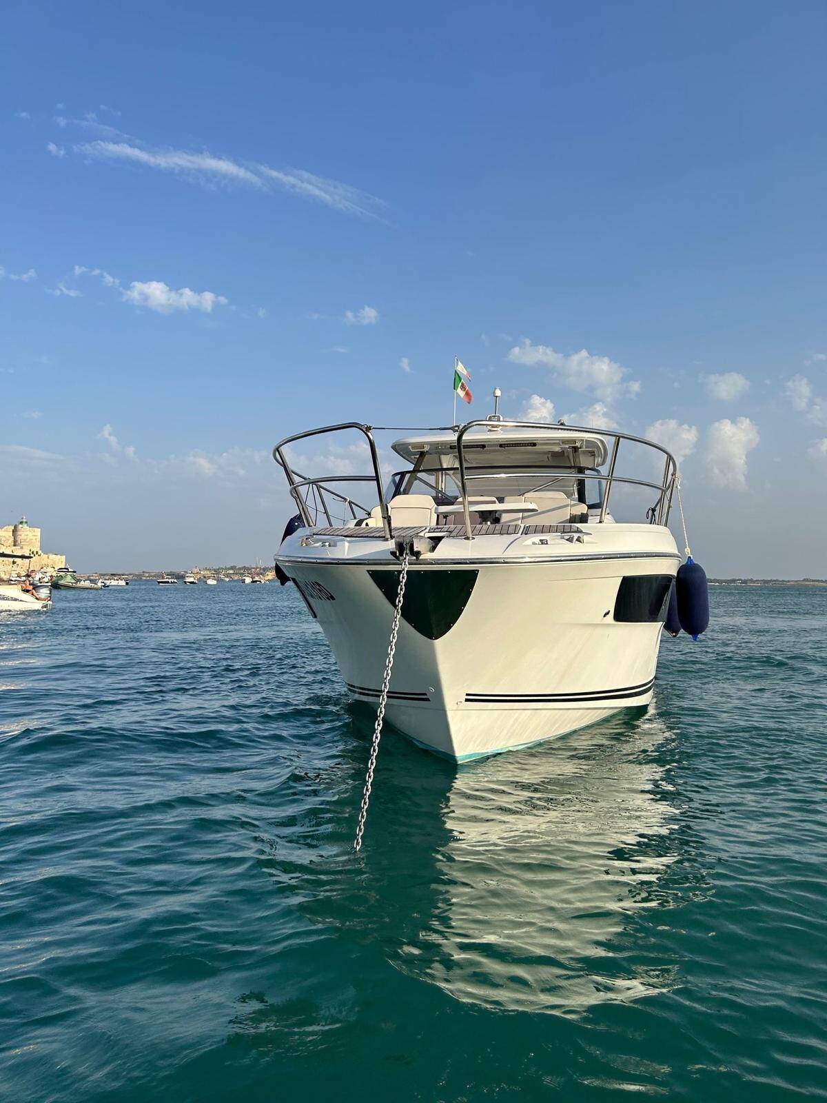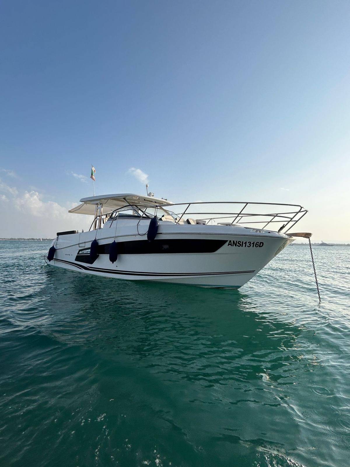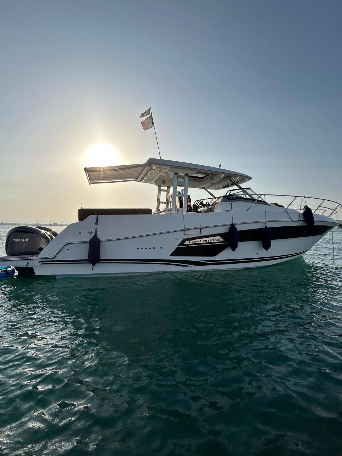 Motor boat Cap Camarat 12.5 Ansimaste, built in 2022 is anchored in the Siracusa, Sicily, Italy. It has 2 cabins, can accommodate 8 + 2 people and has 1 toilets. Bed linen and kitchen equipment are included in the price.