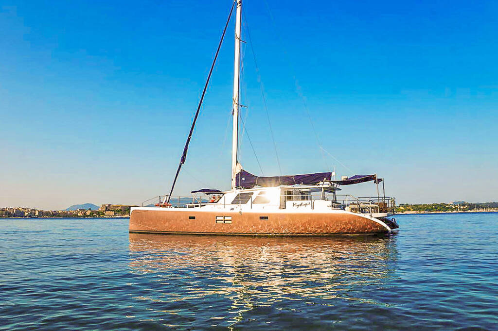 Catamaran Caribe 70 Catamaran Mystique, built in 2000 is anchored in the Corfu, Gouvia Marina, Ionian Islands, Greece. It has 4 + 1 cabins, can accommodate 8 + 2 people and has 4 + 1 toilets. Bed linen and kitchen equipment are included in the price.