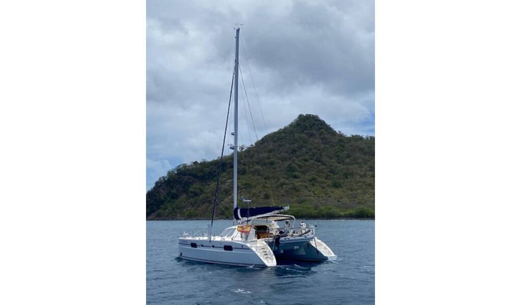 Catamaran Catana 431 Ultreia, built in 2002 is anchored in the Palma de Mallorca, Port Andratx, Balearic Islands, Spain. It has 3 cabins, can accommodate 4 people and has 2 toilets. Bed linen and kitchen equipment are included in the price.