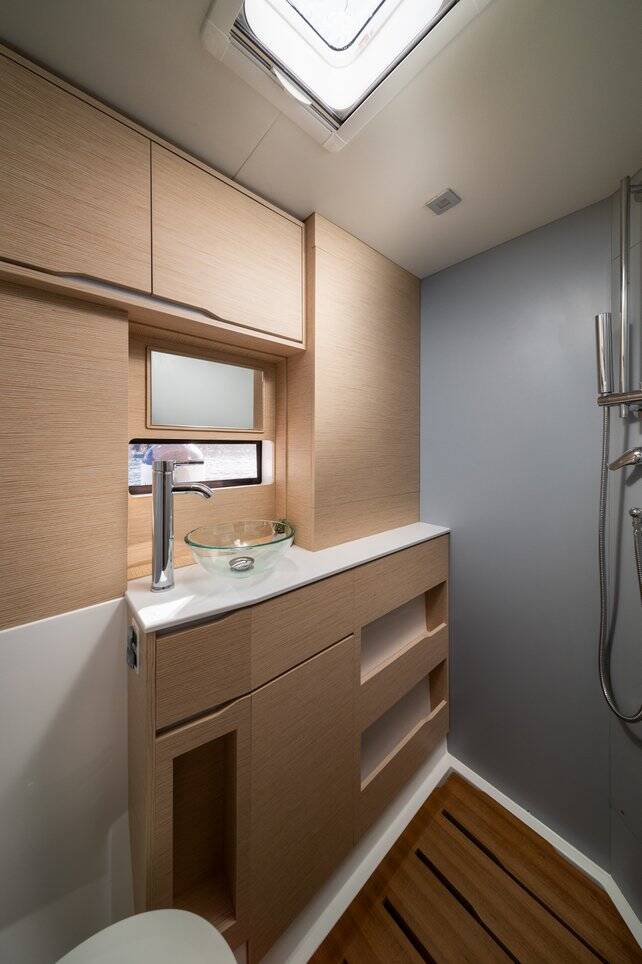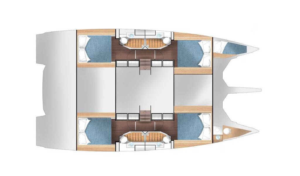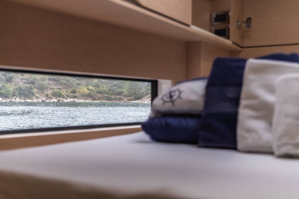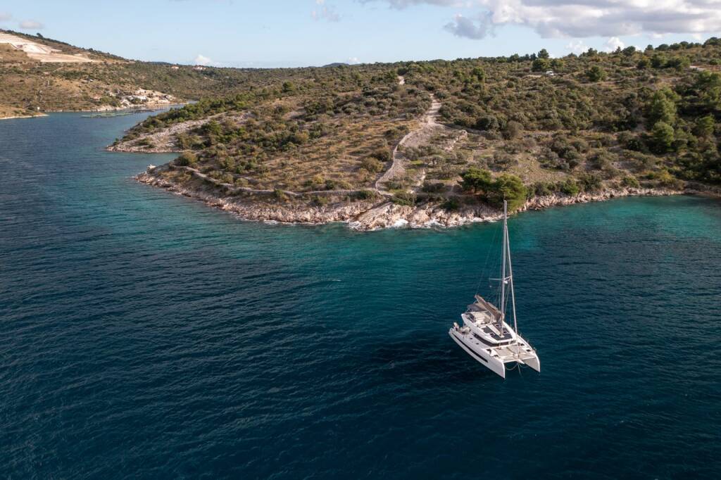 Catamaran Cervetti 44 Alba, built in 2025 is anchored in the Marina Kremik, Primosten, Šibenik region, Croatia. It has 4 + 1 cabins, can accommodate 8 + 1 people and has 4 + 1 toilets. Bed linen and kitchen equipment are included in the price.