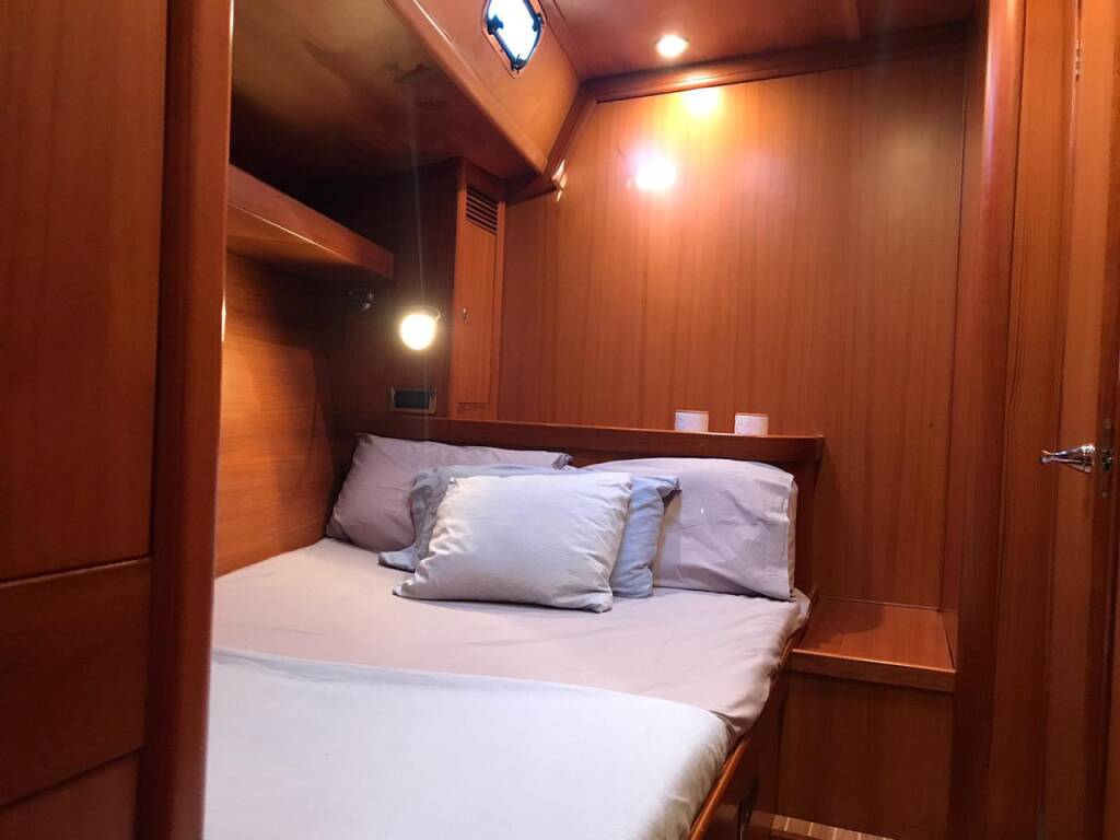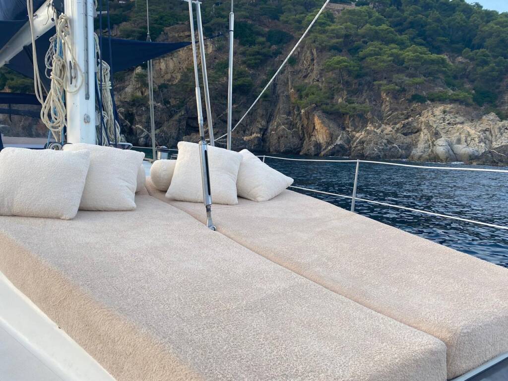 Sailing yacht Cubic 70 Costa Nord, built in 2002 is anchored in the Palma de Mallorca, Port Andratx, Balearic Islands, Spain. It has 4 + 1 cabins, can accommodate 8 + 2 people and has 3 + 1 toilets. Bed linen and kitchen equipment are included in the price.