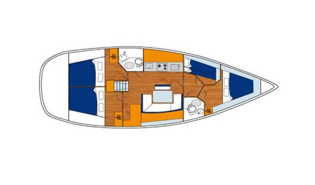 Sailing yacht Cyclades 43.4 Zephyros, built in 2007 is anchored in the Lefkas, D-Marin, Ionian Islands, Greece. It has 4 cabins, can accommodate 8 + 1 people and has 2 toilets. Bed linen and kitchen equipment are included in the price.